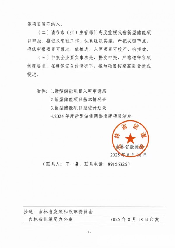 據(jù)全球液流電池網(wǎng)獲悉,8月18日,吉林省能源局發(fā)布《關(guān)于全面加強(qiáng)我省新型儲(chǔ)能項(xiàng)目管理工作的通知》。在附件4吉林省2024年度新型儲(chǔ)能調(diào)整出庫項(xiàng)目清單中,累計(jì)出庫項(xiàng)目總規(guī)模約2.6GW/5.4GWh。建設(shè)單位涉及國家能源集團(tuán)、中國電建、中國能建等。技術(shù)路線覆蓋飛輪、磷酸鐵鋰、全釩液流、水系有機(jī)液流電池等。