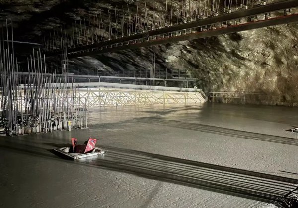 地下副廠房作為電站的重要組成部分,承擔著安置各類輔助設備和保障電站安全穩定運行的關鍵作用。混凝土澆筑施工面臨著作業空間小、材料運輸難、預埋管路多等諸多挑戰。肇慶業主項目部成立了“機電安裝廠房澆筑黨員突擊隊”,組織參建單位詳細編排了進度計劃,統籌施工資源投入,24小時不間斷施工,確保了澆筑順利完成。
