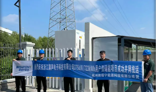 施福寧能源于浙江旗聲電子科技有限公司建設的用戶側儲能項目已成功并網投運。該項目規模達375kW/723kWh,預計首年可為客戶節省電費約40萬元,并間接減少二氧化碳排放約320噸,兼具經濟與環保效益。